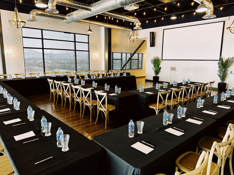 The View Main Hall is located on the 3rd Floor of the Davis Vision Center. East and North walls have floor-to-ceiling windows, creating a spacious atmosphere. Panoramic mountain views South to the Point of the Mountain, North to Salt Lake City, and West overlooking Daybreak.